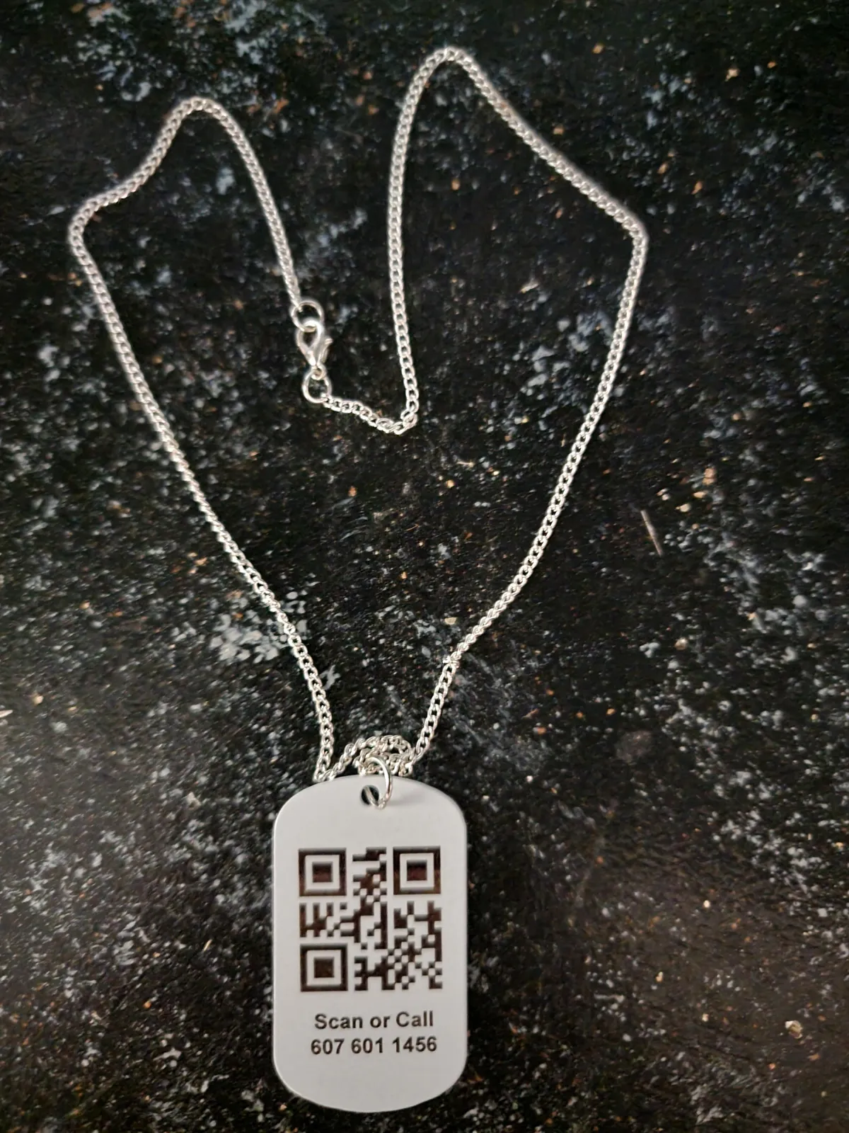 The first voice-powered ID tag designed for missing persons, seniors, and children. This sleek, dog-tag-style necklace combines a scannable QR code, a private phone number, and a voice agent that speaks on behalf of your loved one—whether they’re lost, disoriented, or unable to communicate.... More Info. Order